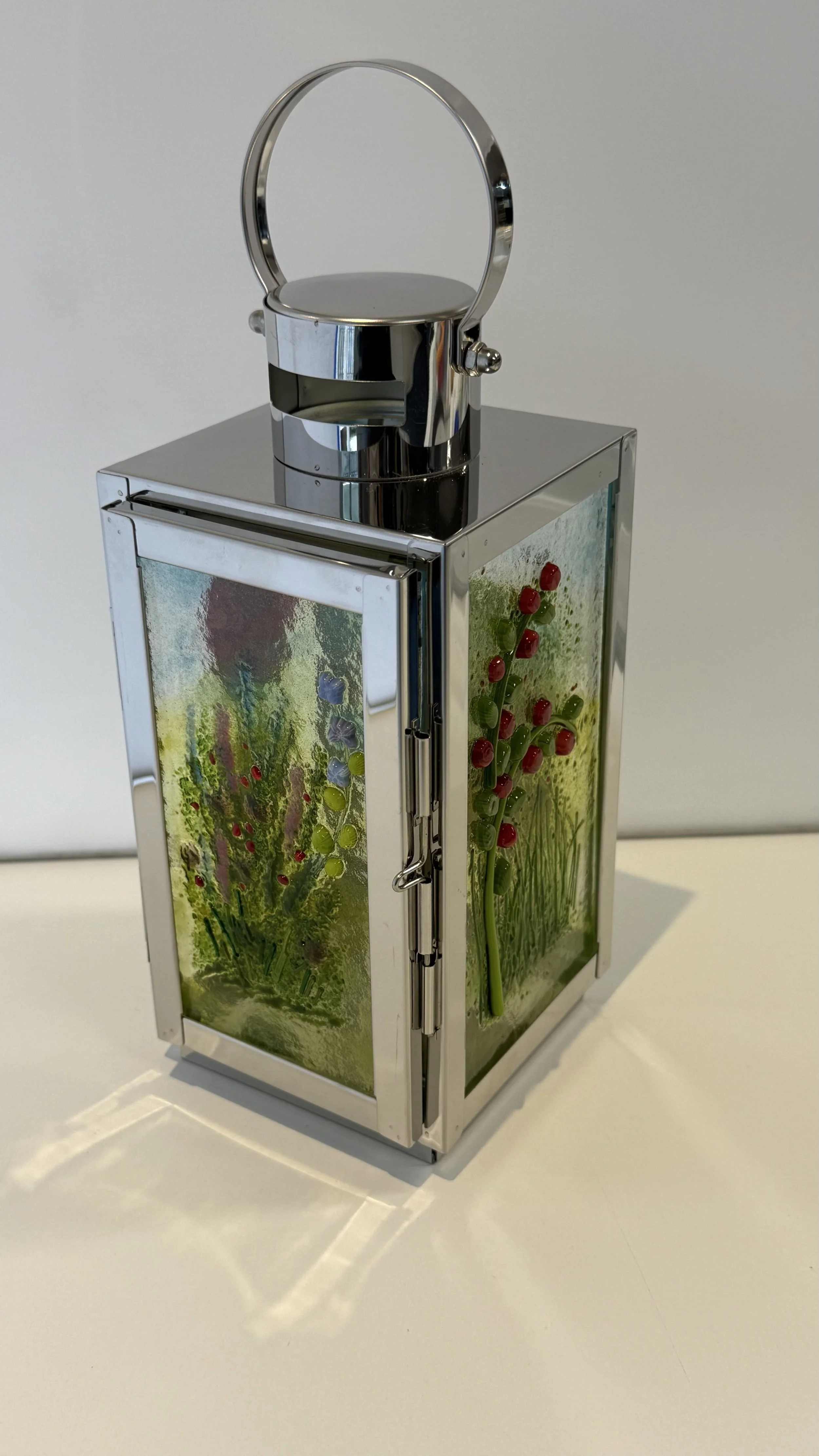 In the beginner's workshop you will decorate a pre-cut shape & learn simple glass cutting techniques to create a small picture. If you have already attended a beginner's class & would like to come back & make something else, please get in touch.In the lantern decorating workshop you will have 4 pre-cut glass panels to decorate as you wish. The panels will then be fired in my kiln & I will assemble the lantern using your glass. The cost of the lantern is included in the price.